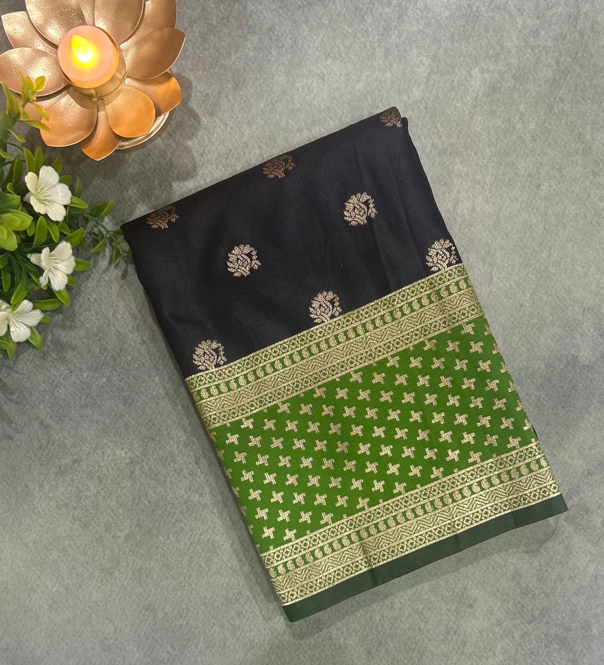 Black n green semi soft-10 silk saree
