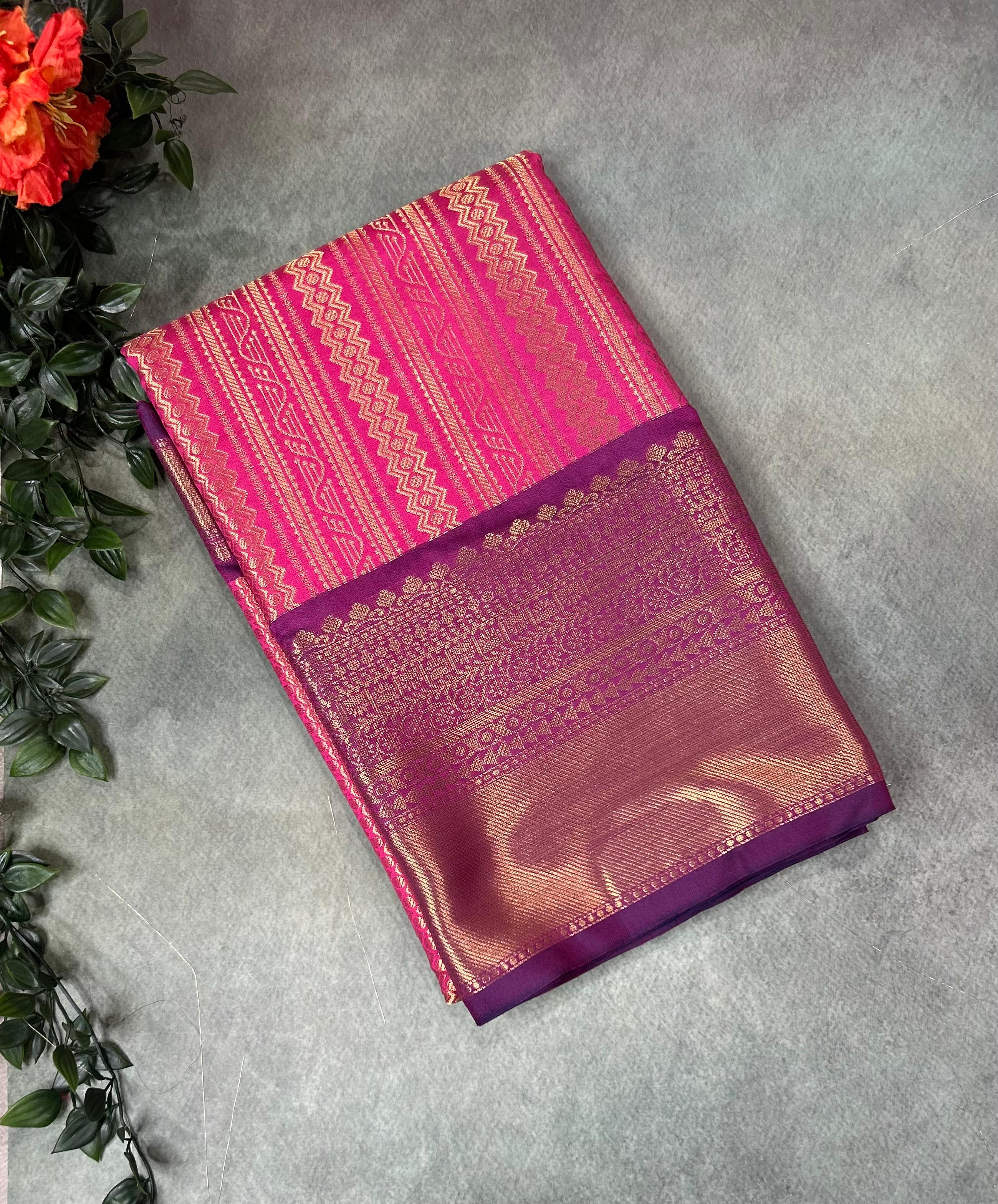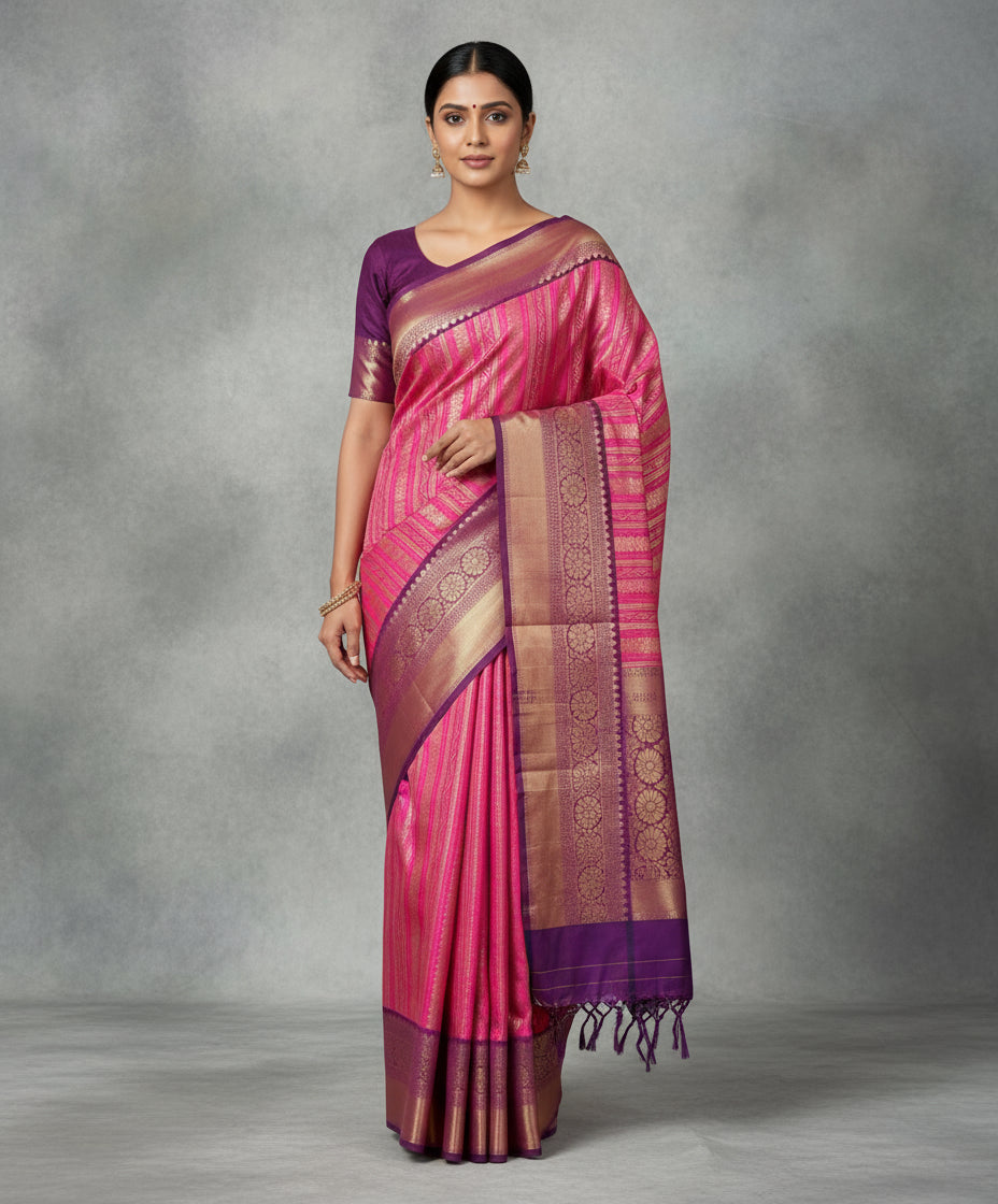 Experience timeless beauty with this exquisite Semi Kanchipuram saree. Crafted with rich silk-blend fabric and adorned with intricate zari borders, it perfectly blends traditional charm with modern grace. Ideal for festive occasions, weddings, and cultural celebrations.